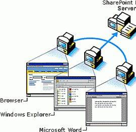 Главное и основное - это упрощение электронного документооборота. Поэтому поговорим о нем поподробнее. Традиционно обмен файлами и электронными документами происходил с помощью расширенных ресурсов в Сети - папок, дисков или через файловые серверы. Естественно, в этом случае пользователи сталкивались с разного рода трудностями: попробуйте-ка отыскать необходимую вам версию документа в сложной структуре общих папок. Даже использование DFS (Distributed File System – распределенная файловая система) не помогало решить эти проблемы. Общие папки представляют собой не что иное, как иерархическую структуру каталогов в качестве способа организации информации. Скажем так: это гипертрофированная файловая система обычного логического диска. При этом пользователь обычно только одним способом может перейти к интересующему его элементу, не говоря уже о том, что его поиск (если таковой вообще будет возможен) чаще всего не приносит положительных результатов. Если в системе, к тому же, по каким-то причинам не используется DFS, пользователю придется запоминать имя компьютера, сетевой адрес и т.д. (а его не так-то просто заставить это сделать, зачастую пользователи не в состоянии запомнить свой собственный пароль!).